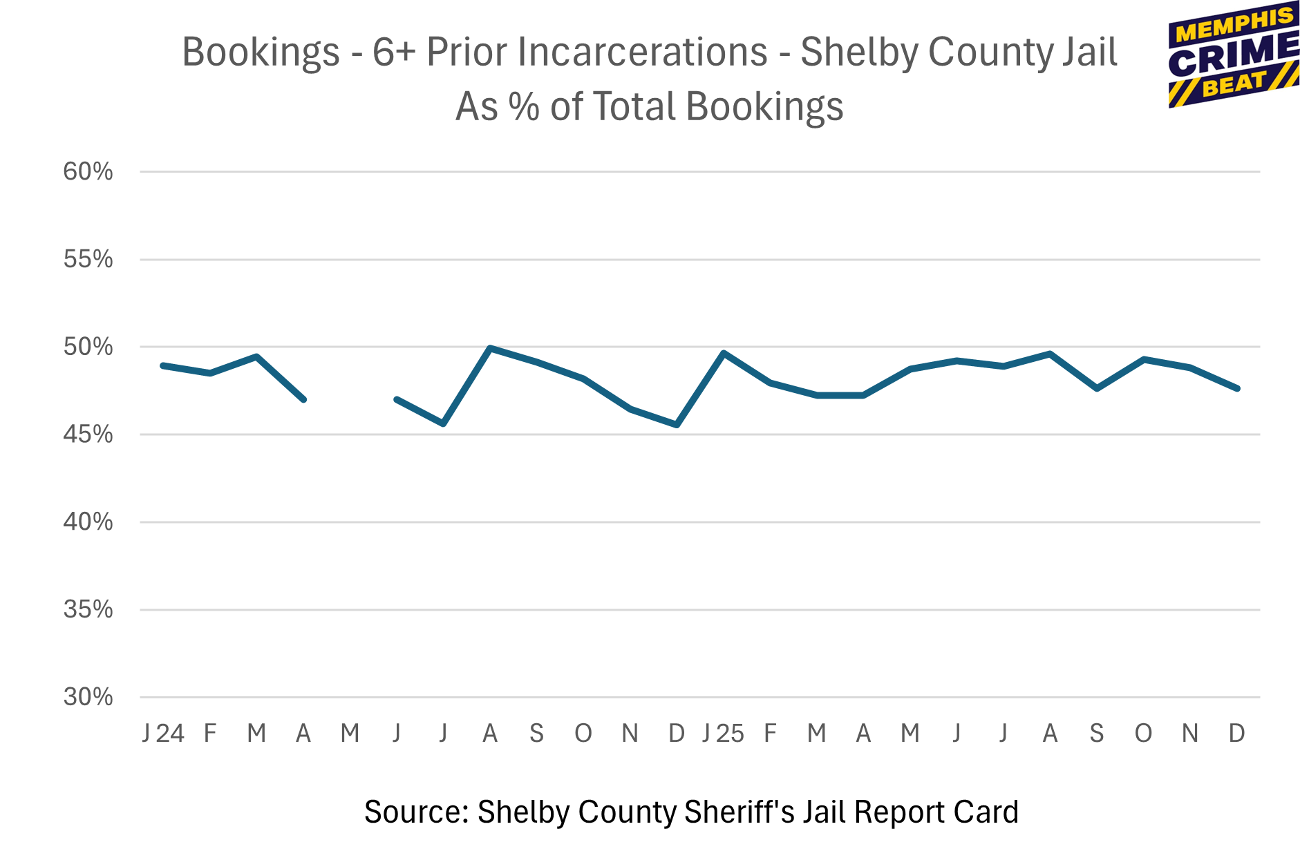 Graphs from the jail report cardDec 2025 Click here for the Jail Report Card and graphs: Graphs Jail Report Card jail population and booking time recidivism rate